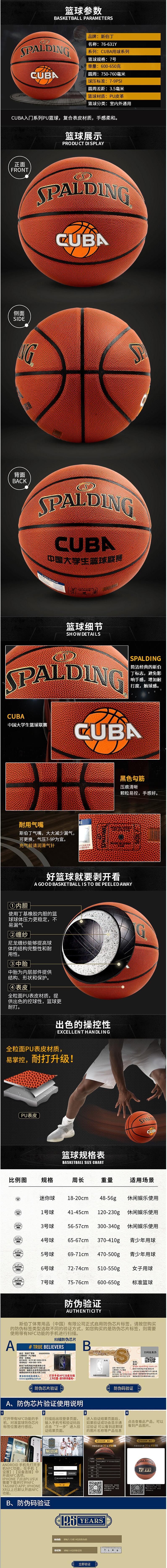 斯伯丁 76-631Y 篮球室内外7号PU材质成人儿童蓝球