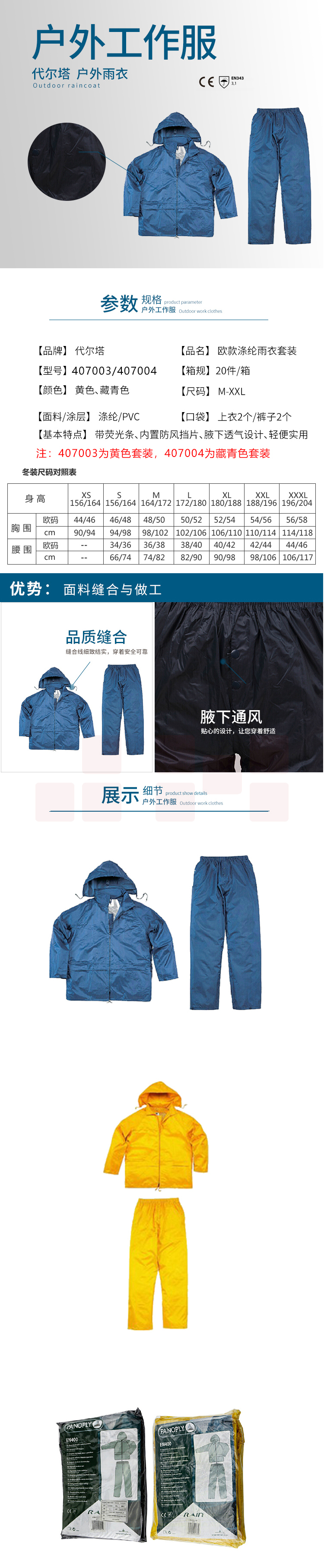 代尔塔 407004 反光条PVC劳保分体雨衣 M L XL