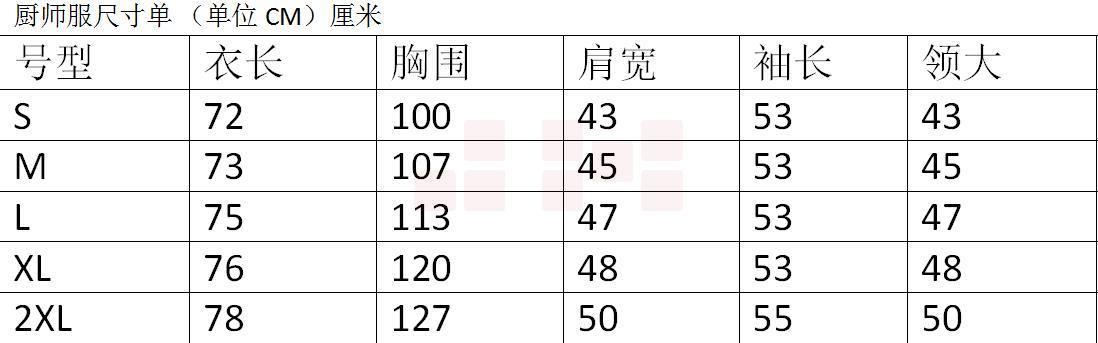 长袖厨师服 腋下带透气网、绣字 (请联系备注尺码)
