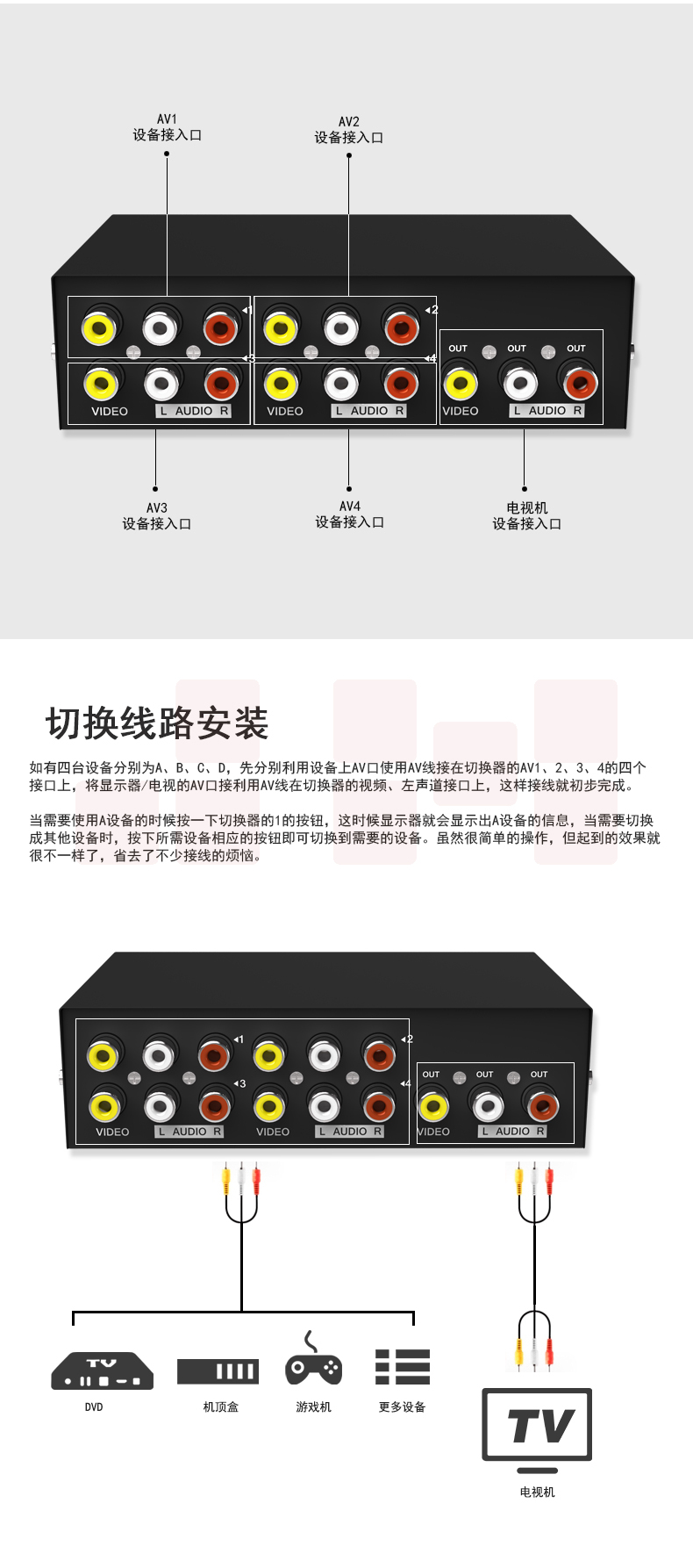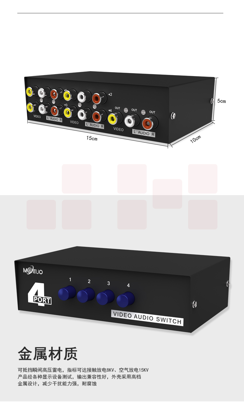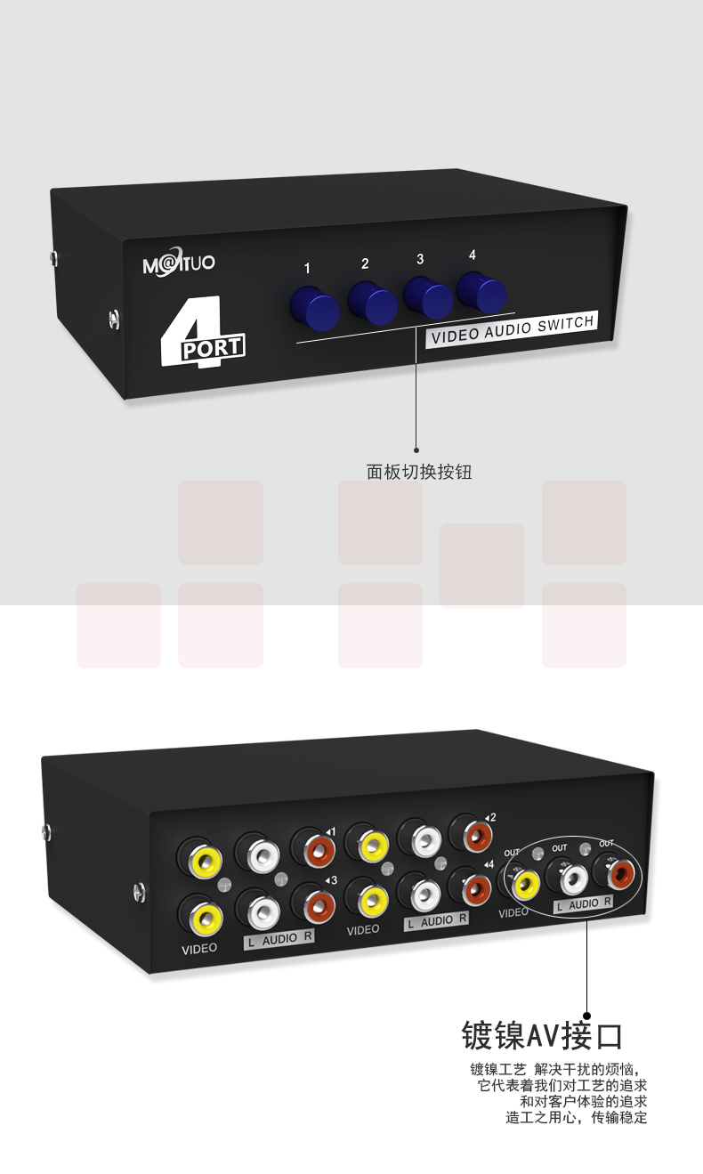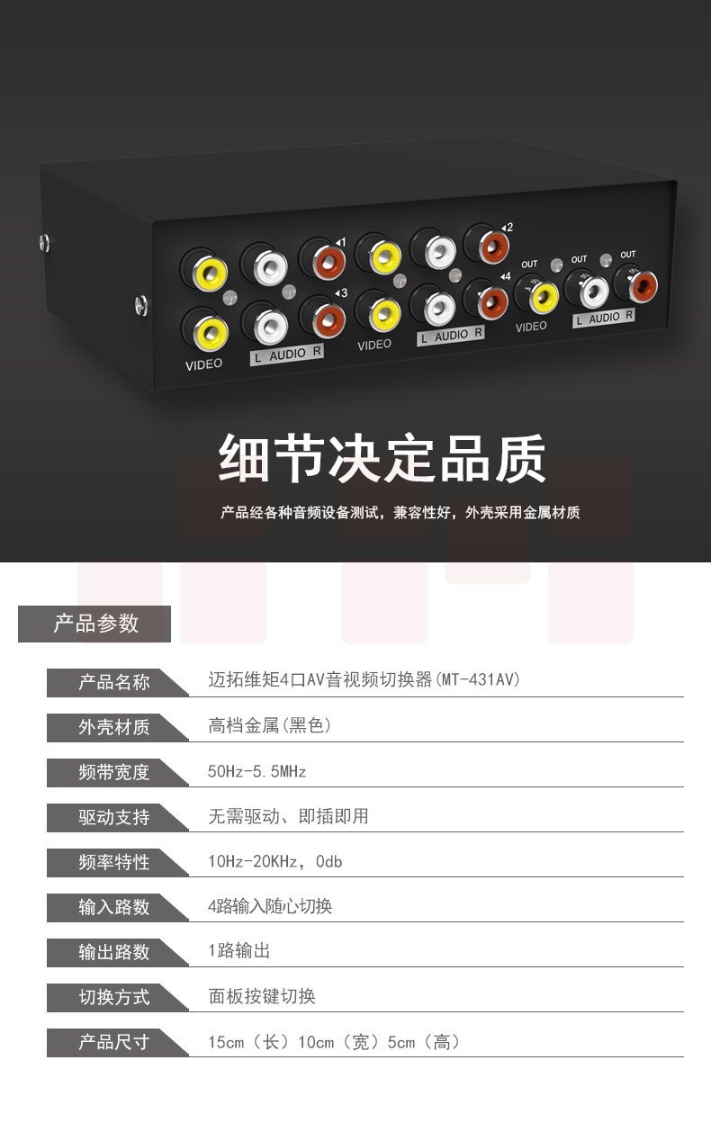 迈拓维矩MT-431AV av切换器4进1出视频切换器四进一出音频信号切换器