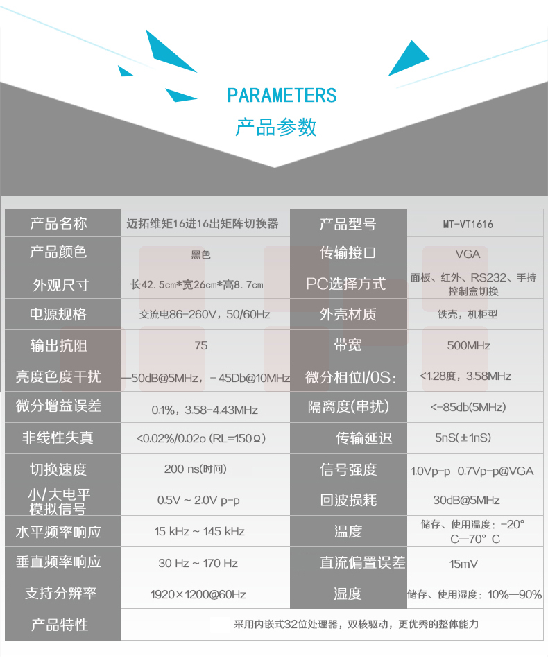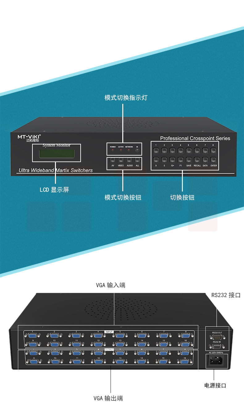 迈拓维矩MT-VT1616 vga矩阵切换器16进16出工业级高清视频会议主机