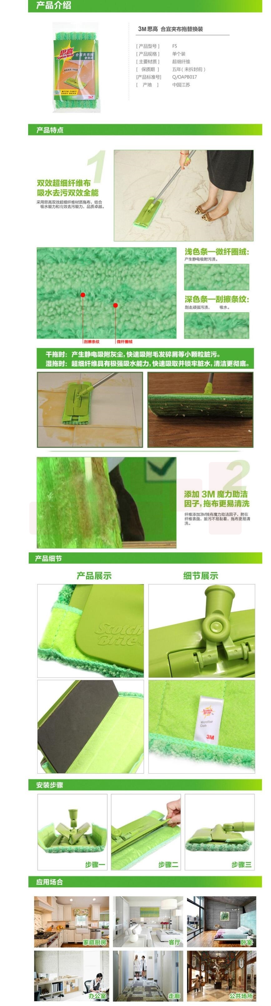 3M思高 F5夹布平板拖把原装替换布 1片装