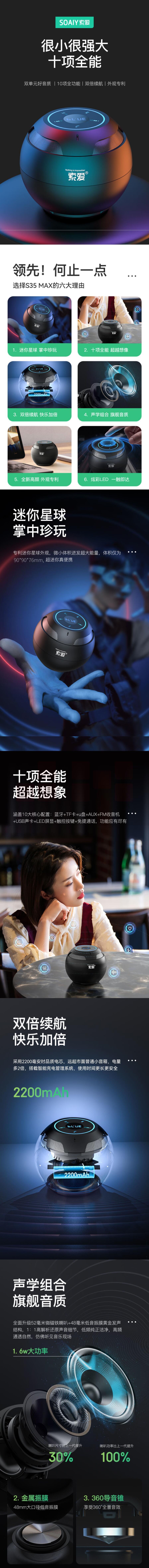 索爱 蓝牙音箱小音响便携式U盘播放FM收音机3D环绕睿智黑S35max