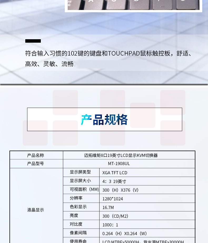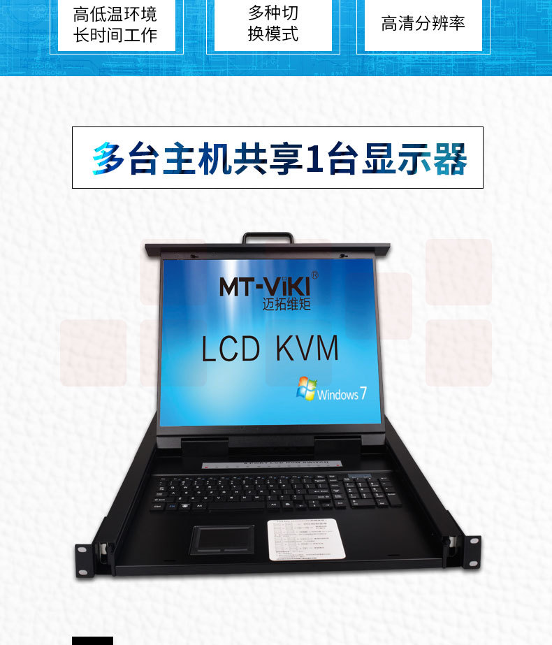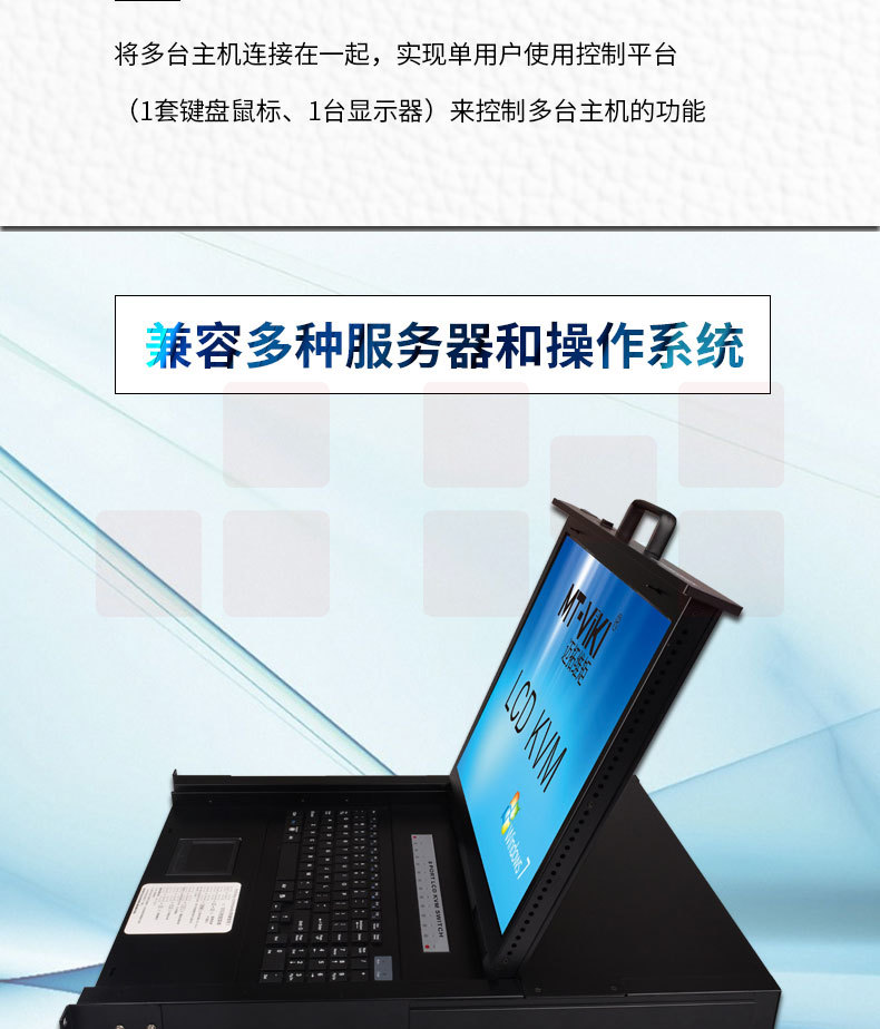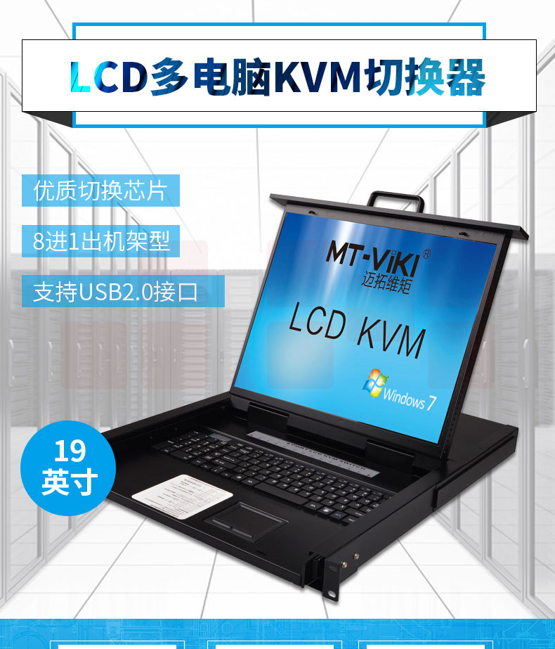 迈拓维矩(MT-viki)19英寸LCD液晶显示屏多电脑kvm切换器8口USB自动vga机架式 MT-1908UL-IP八进一出
