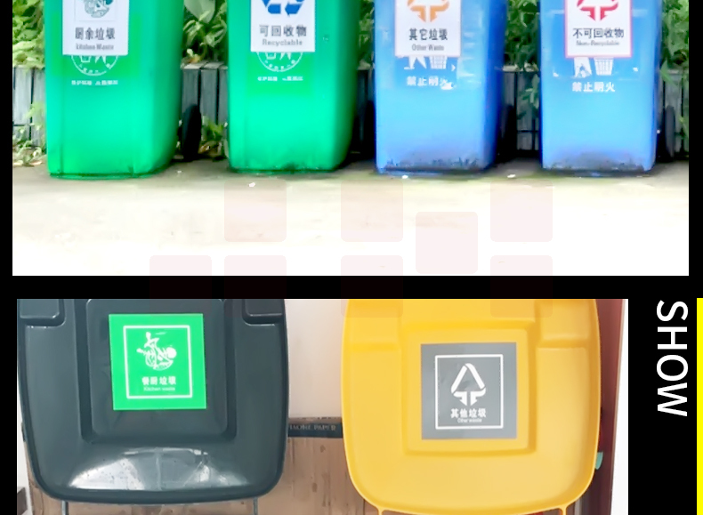 厨余垃圾,有害垃圾,可回收垃圾,其他垃圾警示贴 30*40 四张/套