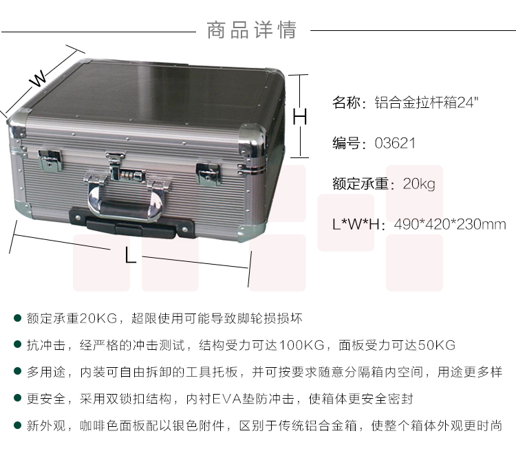 世达(SATA)铝合金拉杆箱24"/五金大号24寸多功能拉杆工具箱铝合金航空道具箱03621