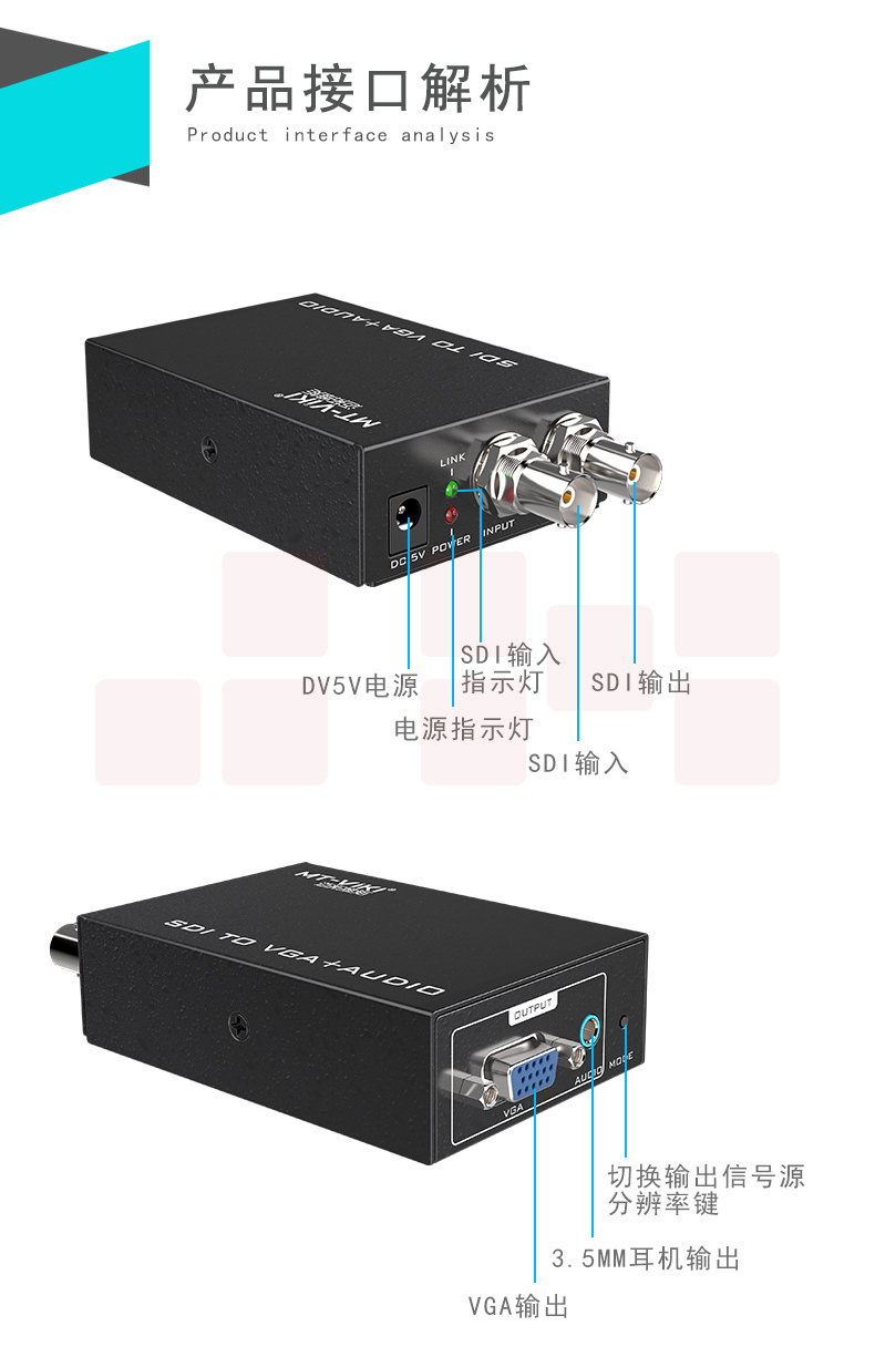 迈拓维矩MT-SV12 sdi转vga转换器音视频同步高清广播级中继环出1080p
