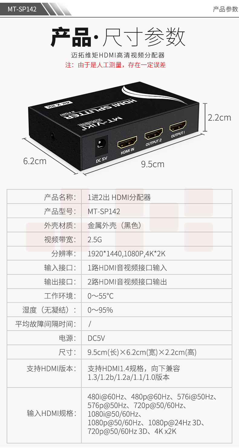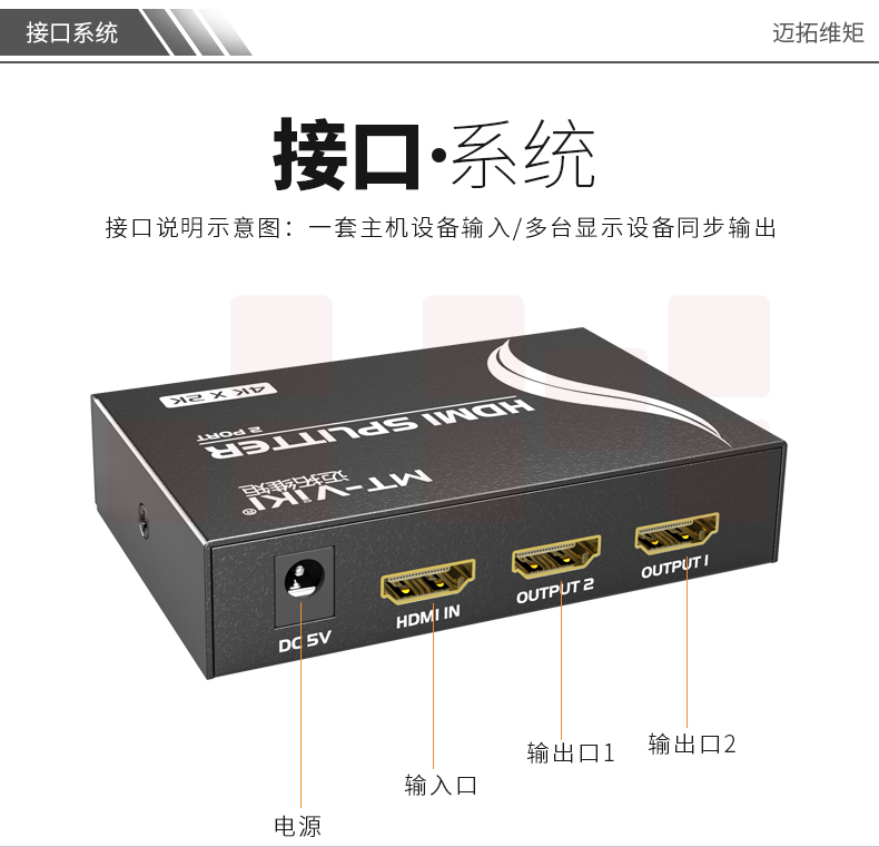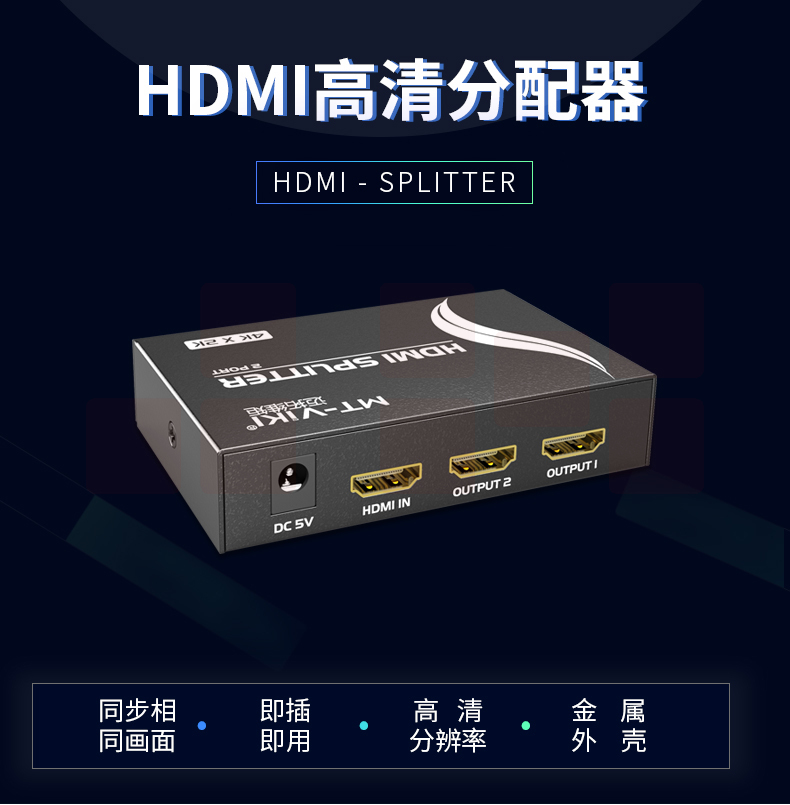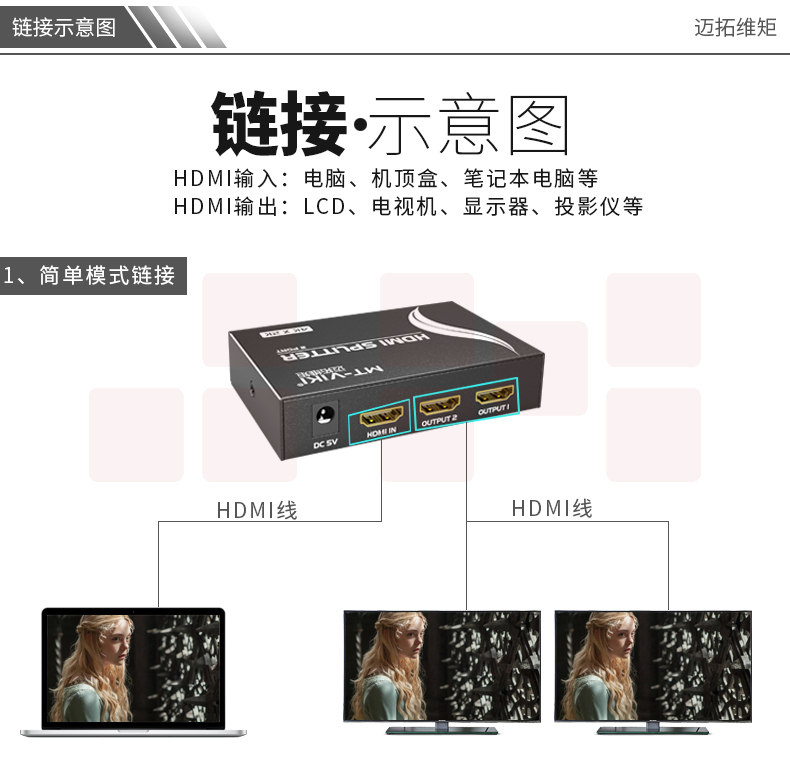 迈拓维矩MT-SP142 hdmi分配器1进2出3D高清4K音视频一分二分频共享器