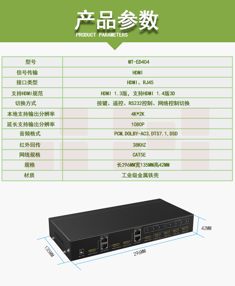 迈拓维矩MT-ED404 4进4出hdmi切换器四进四出高清电脑分配器带延长器