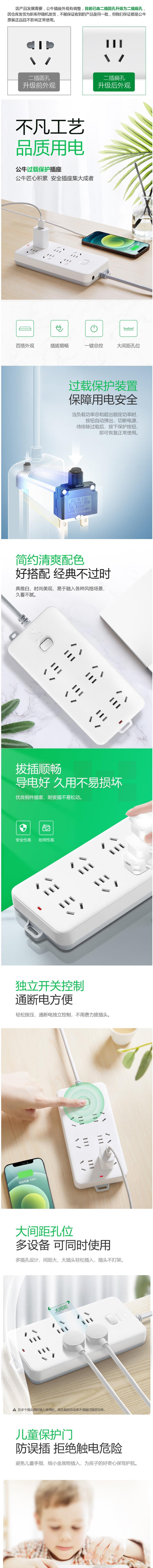 公牛GN-216 3米线 多位插座/10A250V 超功率自动断电