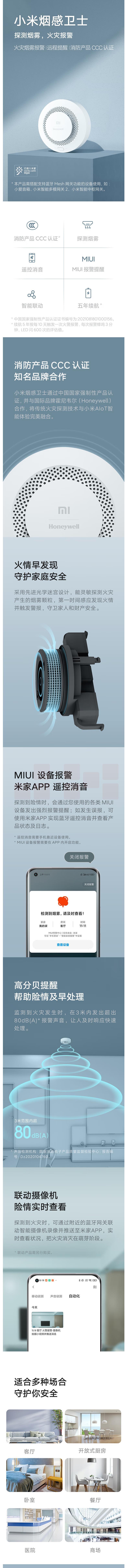 小米烟感卫士 火灾烟雾报警器 远程提醒 遥控消音 智能联动 CCC认证