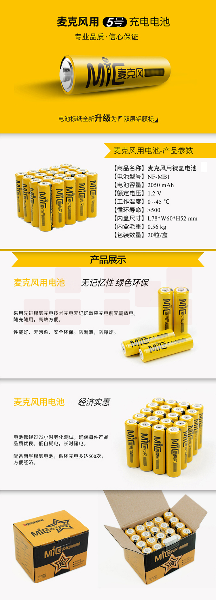 南孚 4节/组 5号麦克风无线话筒2050mAh五号可充电池镍氢冲电电池1.2V