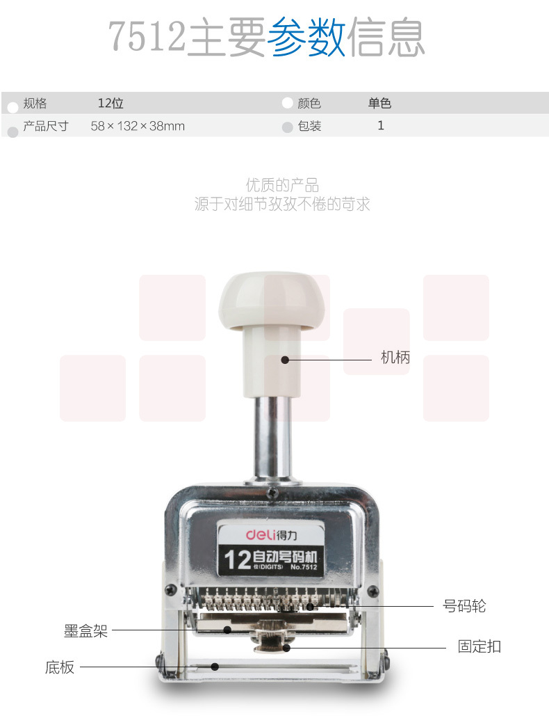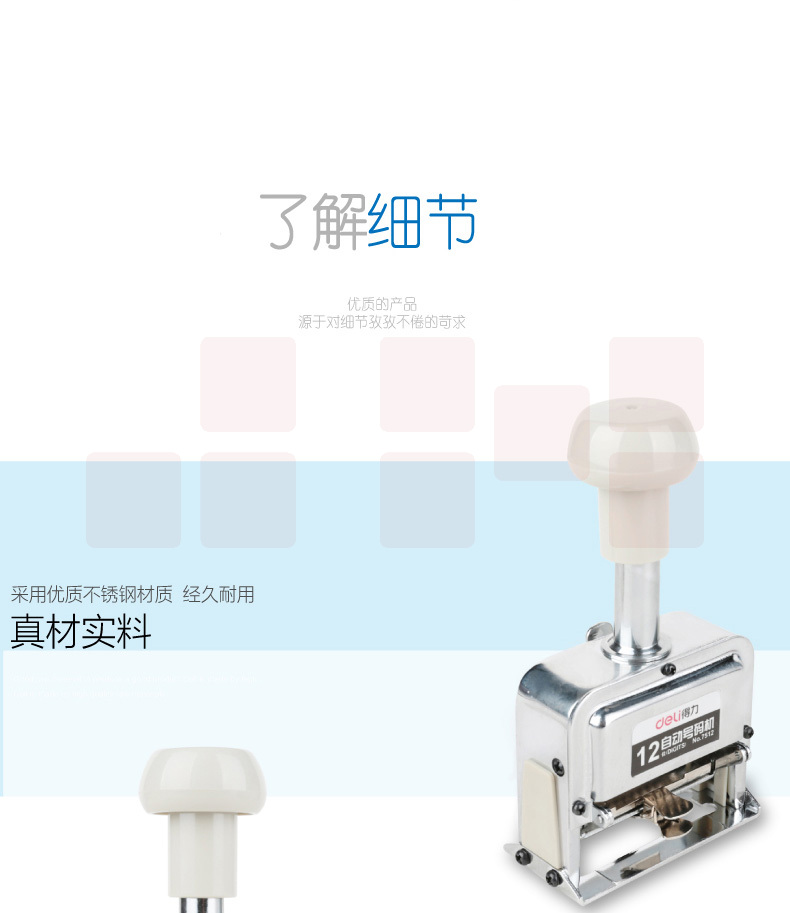 得力 12位自动号码机 页码机 日期可调时间数字印章7512 银色