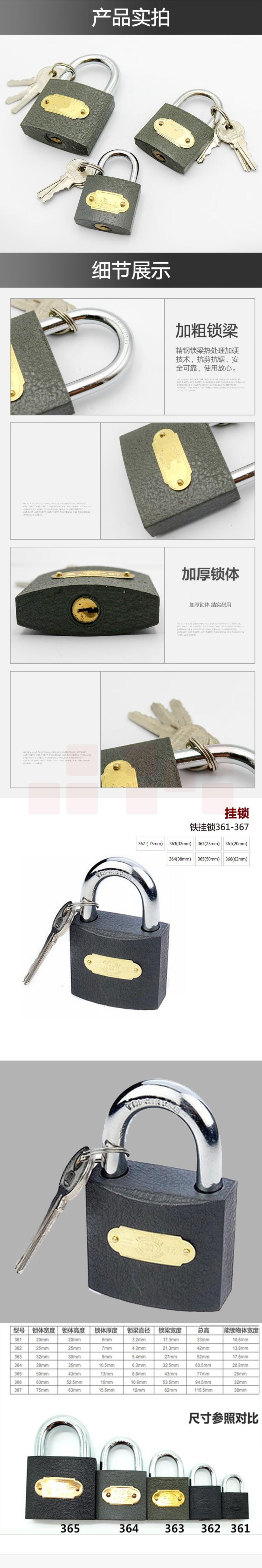 三环 铁挂锁(铜芯)20mm 361 12把/盒 单位:把