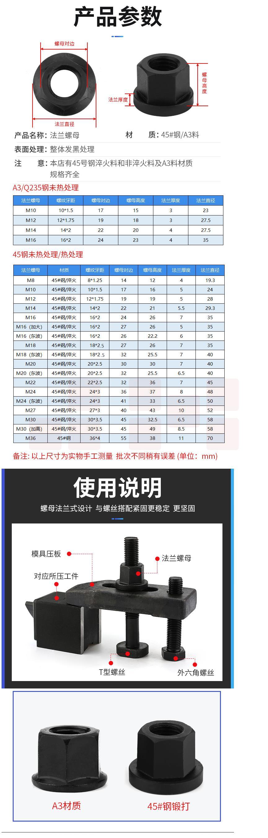 法兰带垫螺帽带垫螺母模具压板螺母 45#钢M12 货号:JC
