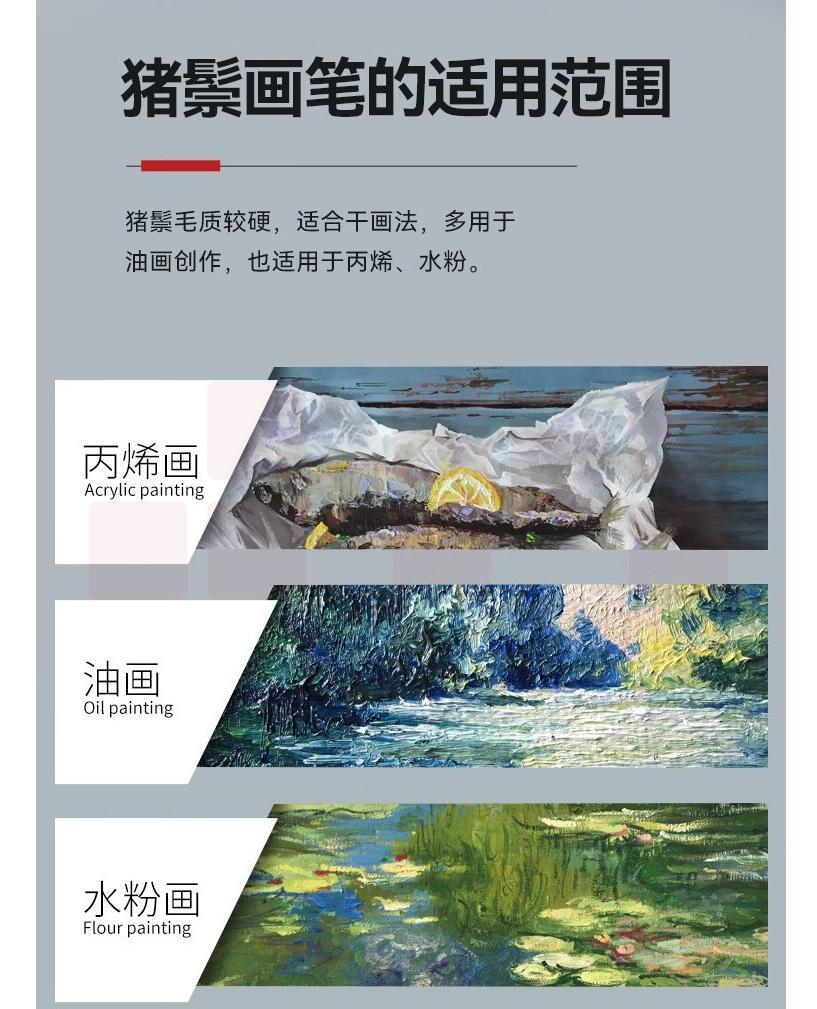 6#猪鬃板刷 偏硬头猪鬃板刷美术手绘墙绘猪鬃短柄油画板刷 货号:JC