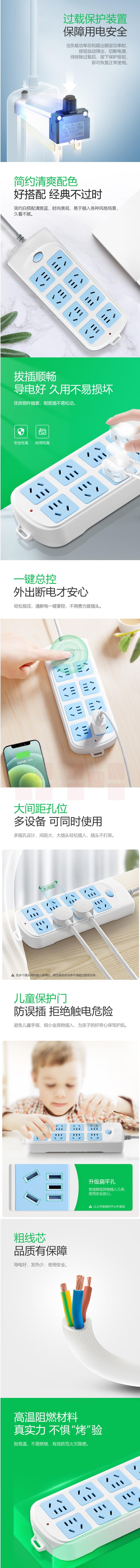公牛GN-604 全长3米插座/插线板/插排 8位总控