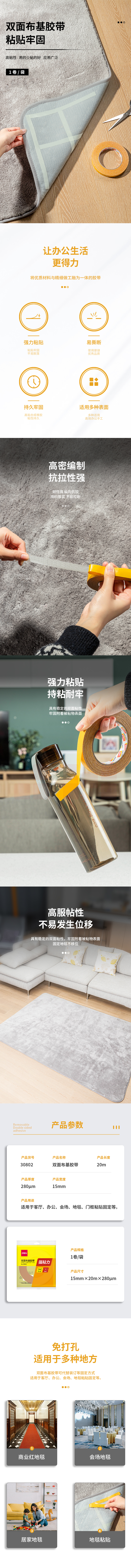 得力30802双面布基胶带15mm*20m*280μm(棕色)(1卷/热缩)