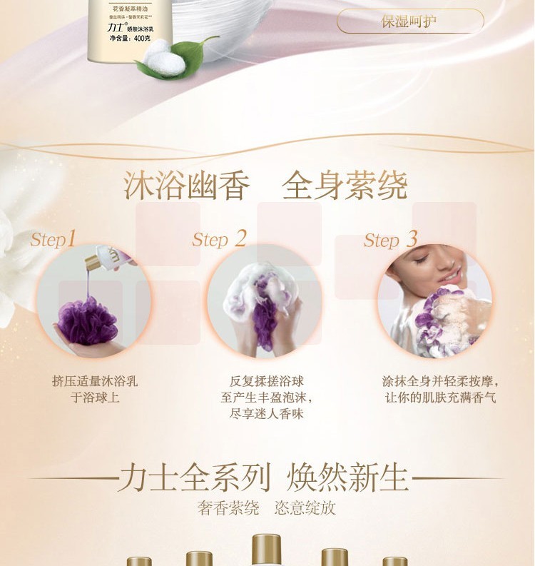 力士 沐浴露 幽莲魅肤400ml 精油香氛沐浴乳