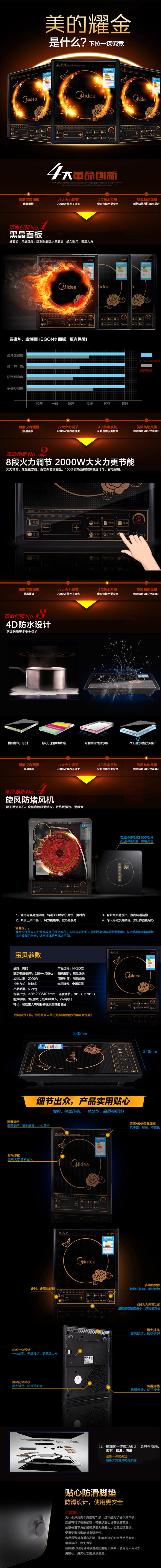 美的电磁炉 HK2002 可煮火锅 8段火力调节 防水按键式黑晶面板 黑色