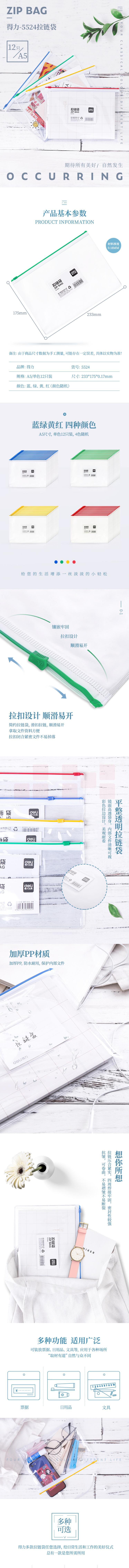 得力 A5透明拉链袋文件袋 12个装 5524 233*175mm
