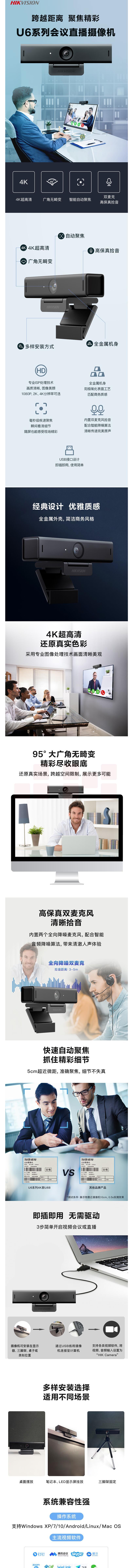 海康威视 4K高清会议摄像头高清带麦克风 800万 U68货号:LJ