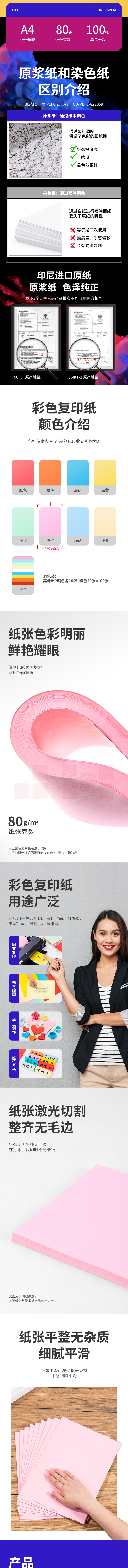 得力A4黄色打印纸手工纸卡纸80g-100张/包