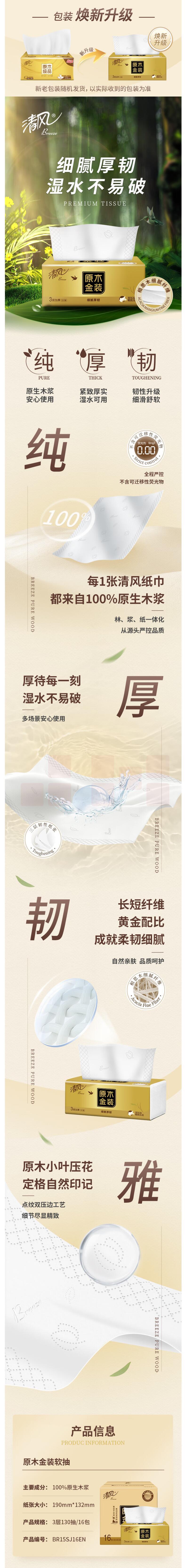 清风 抽纸 面巾纸 原木金装 3层130抽*16包/箱