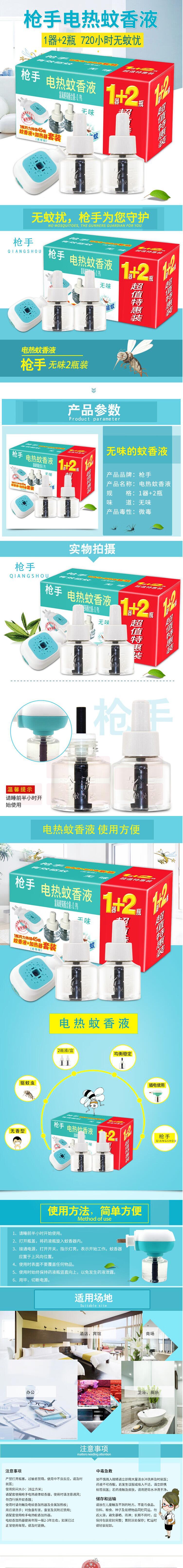 枪手 蚊香液液体驱蚊水无香驱蚊液1器+2液