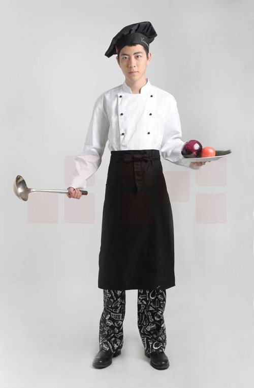 黑色长围裙 厨师围裙 防污围裙 中长款厨师围腰(绣字)