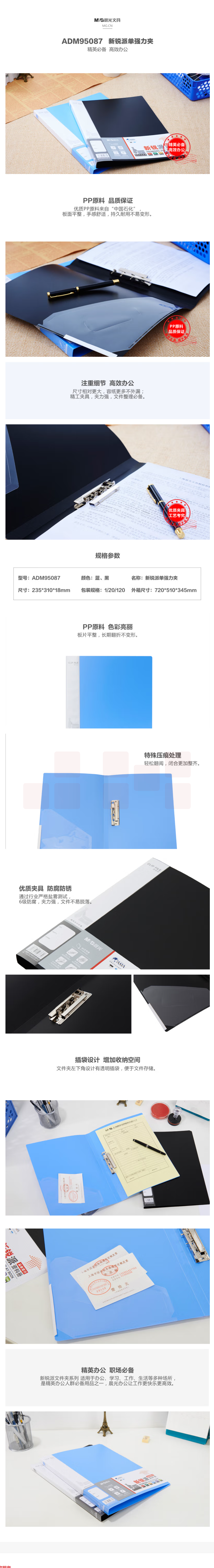 晨光 A4新锐单强力文件夹 ADM95087单强力夹 235*310*18mm