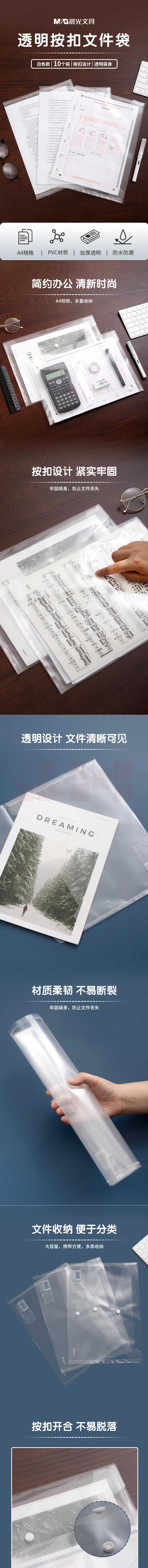 晨光 A4透明按扣文件袋 10个/装 DM929H6