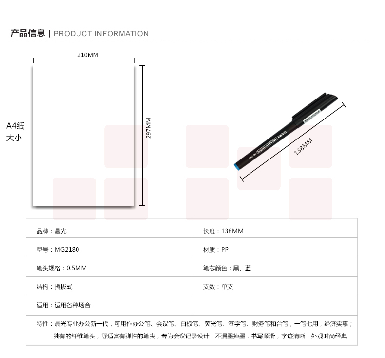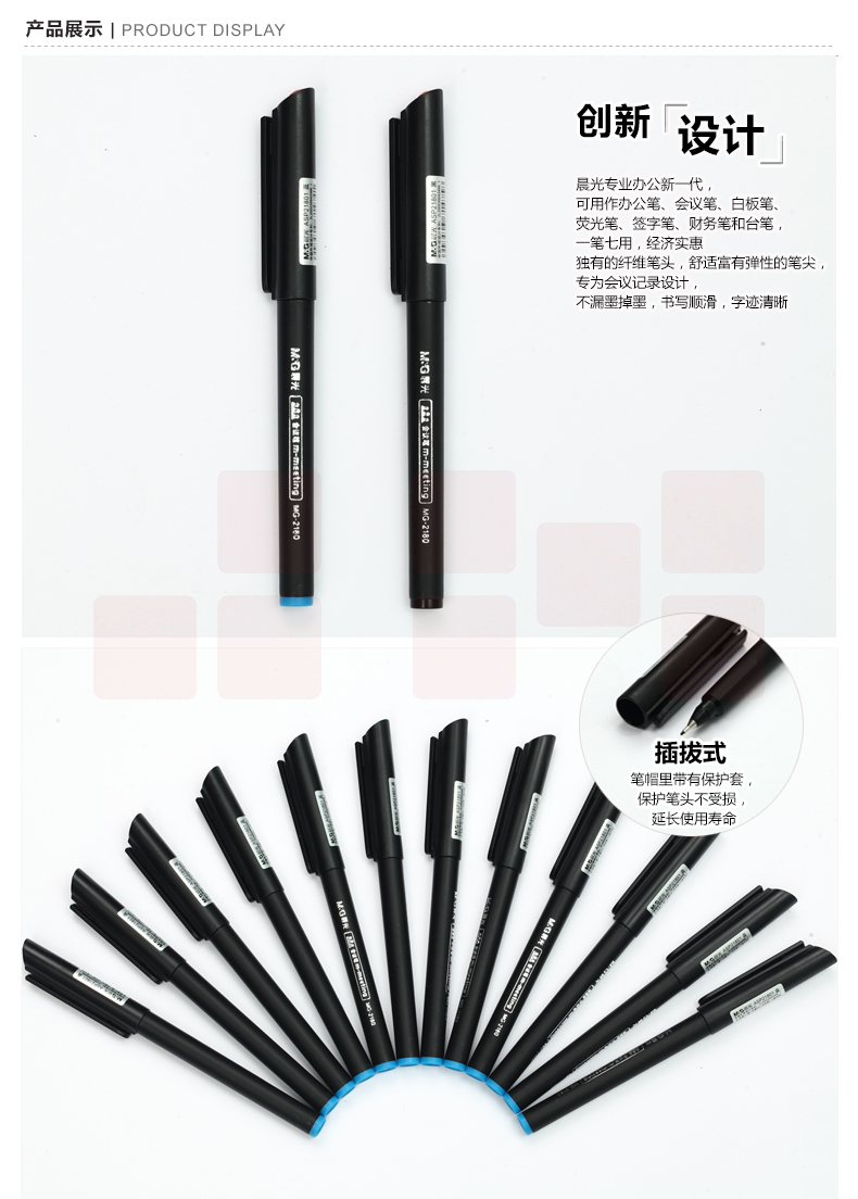 晨光 MG2180 纤维笔头中性笔签字笔0.5mm 黑色笔 12支装