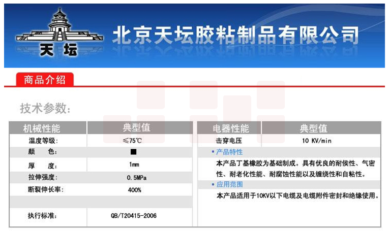 天坛 黑色25mm*5m 高压胶布高压绝缘胶带高压绝缘自粘带 1盘