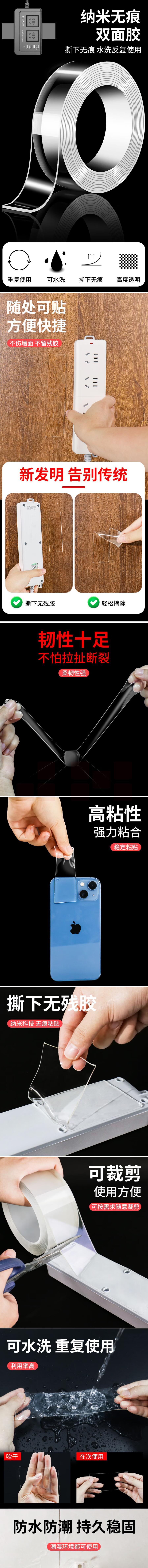 双面胶高粘度透明无痕防水强力纳米 宽5cm*长5m厚2mm