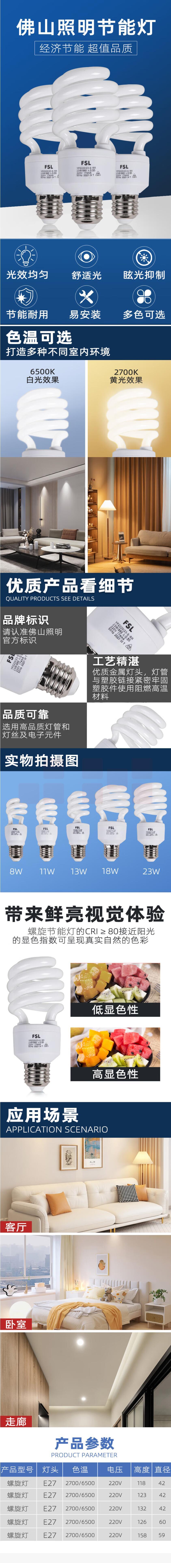 佛山照明 11W 螺旋节能灯 日光灯节能灯E27螺口荧光灯 6500K 白光