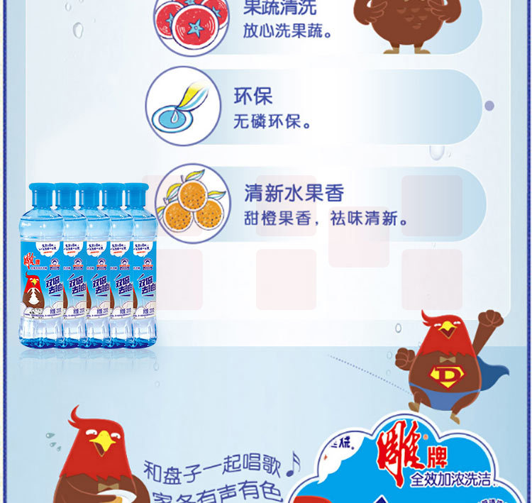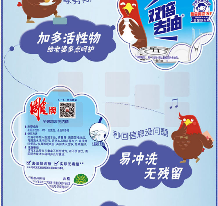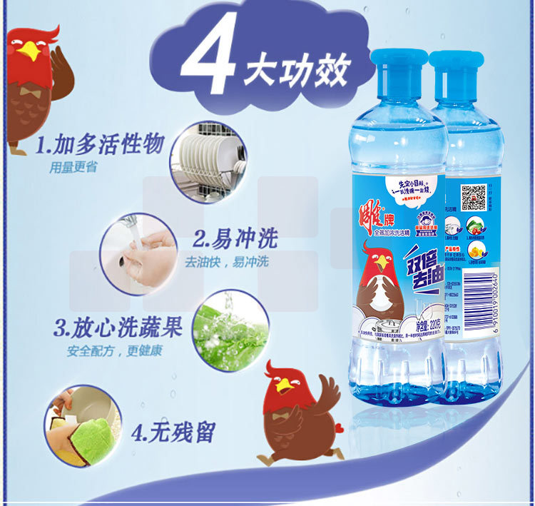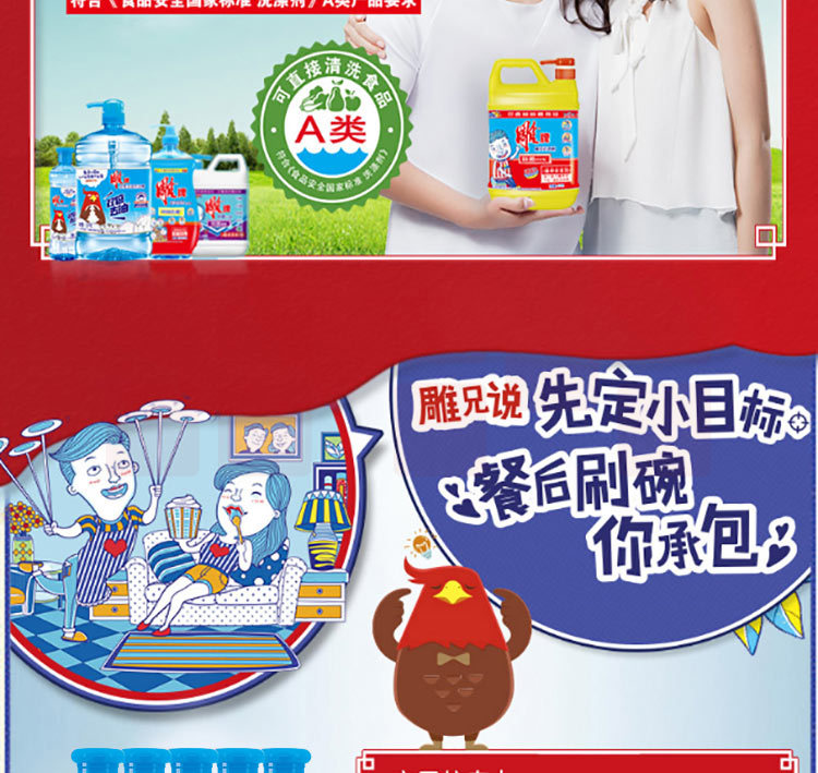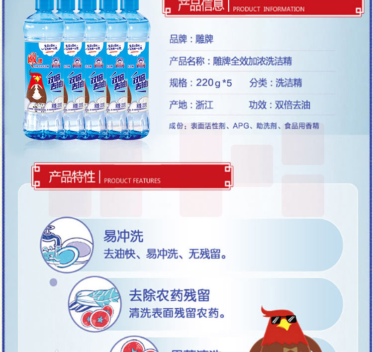 雕牌(DIAOPAI) 洗洁精220g*5瓶双倍去油食品级果蔬餐具加浓洗涤剂
