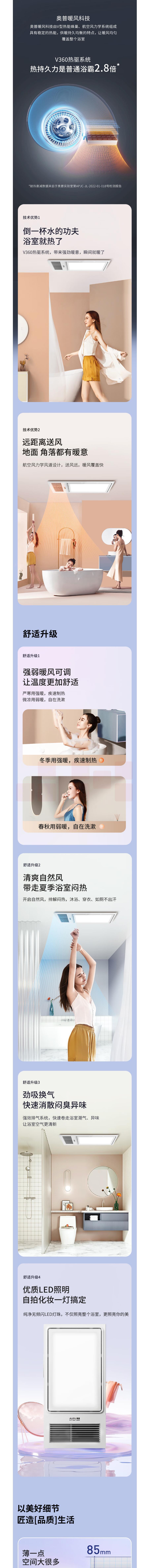 奥普 多功能LED照明换气浴霸 E171 2600W 货号:JC