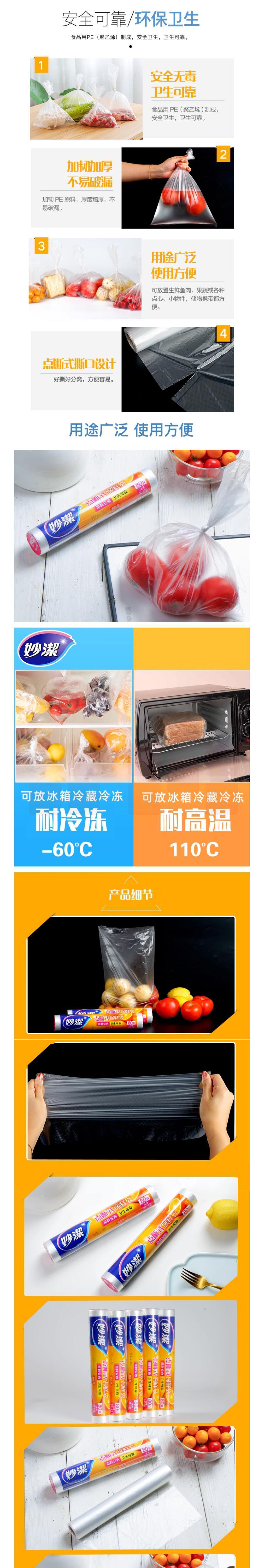 妙洁 家用厨房一次性保鲜袋 30*20cm 5卷 500只 货号:YC