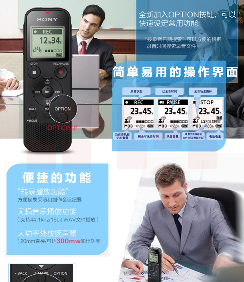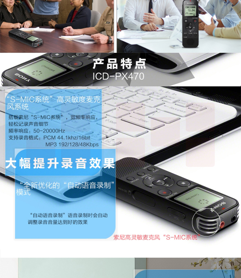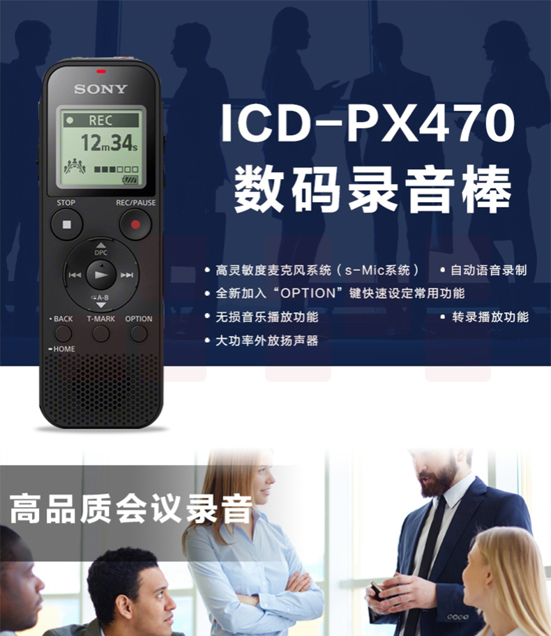 索尼(SONY) 数码录音笔便携式学习型录音棒支持线性录音ICD-PX470 4GB