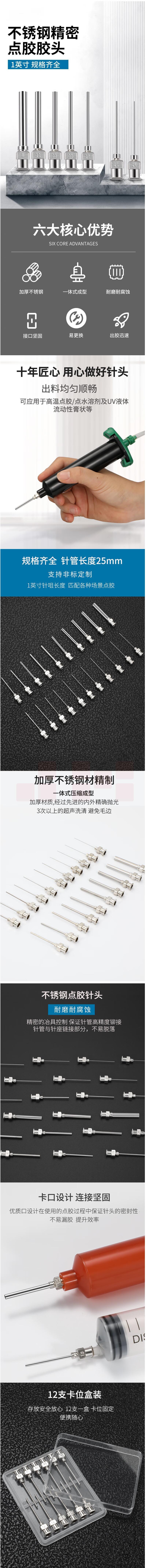 不锈钢点胶机针头 25mm 8G-管长1寸(12支) 货号:HXE