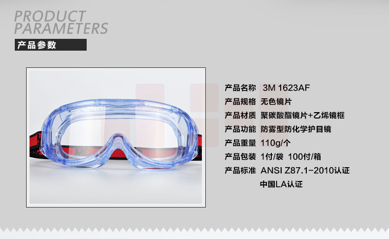 3M 1623AF防护镜 防雾防化学护眼镜100副/箱