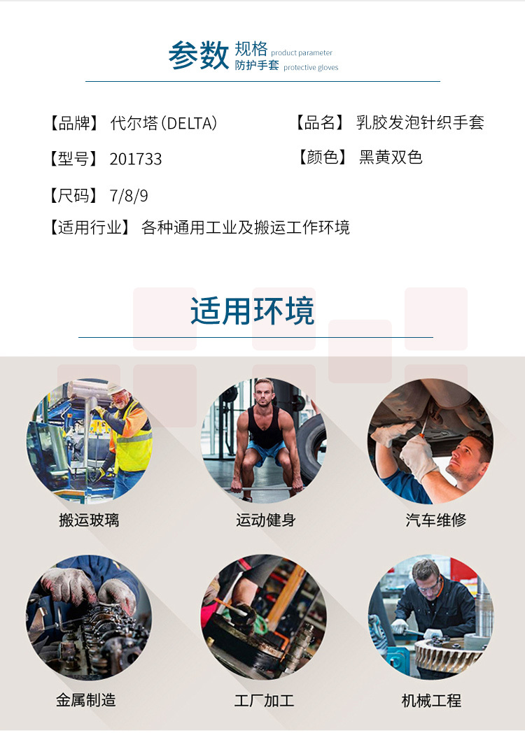 代尔塔 201733 劳保工作手套乳胶发泡针织手套 耐磨抗撕裂
