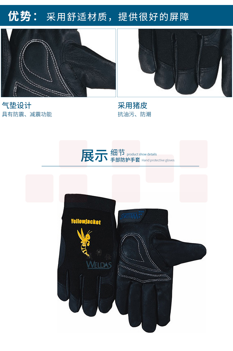 威特仕 10-2660 雄蜂王猪皮机械师手套抗油污防潮赛车手手套舒适灵活黑色 1副
