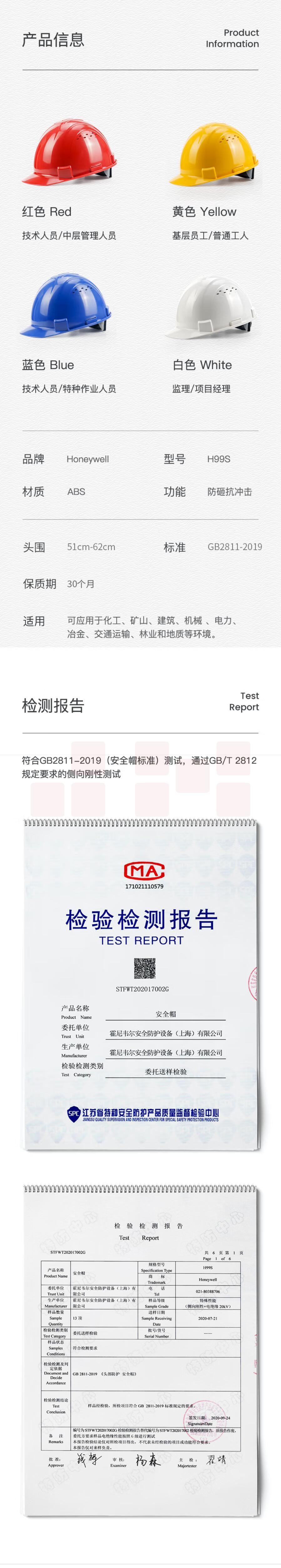 霍尼韦尔 安全帽 H99 ABS 抗冲击 白色 有透气孔 安全帽