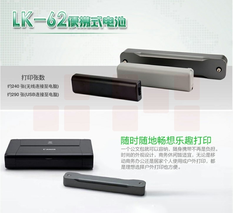 佳能 便携式电池 LK-62 IP110 I100打印机专用电池