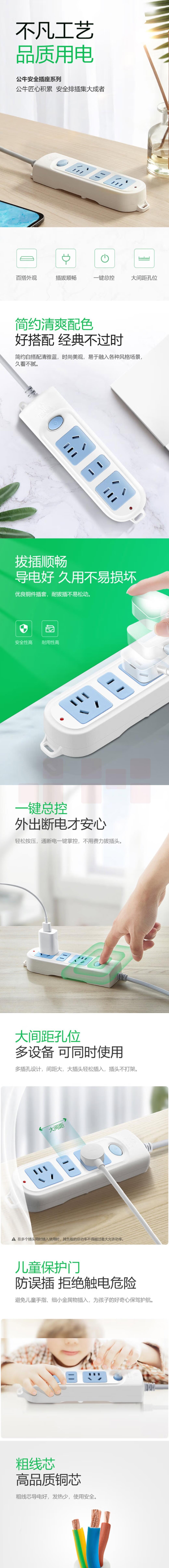 公牛GN-606A 3位总控 5米多位插座 新国标插排接线板移动插座