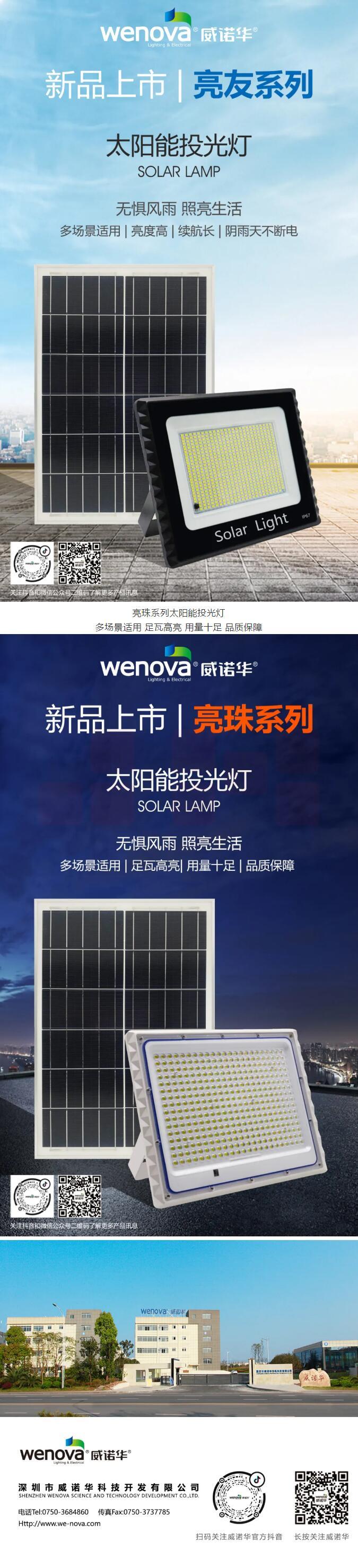 威诺华 60W 亮友太阳能投光灯 光控+时控+遥控 IP65