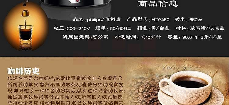 飞利浦 HD7450/20 咖啡机 0.6L (单位:台) 黑色