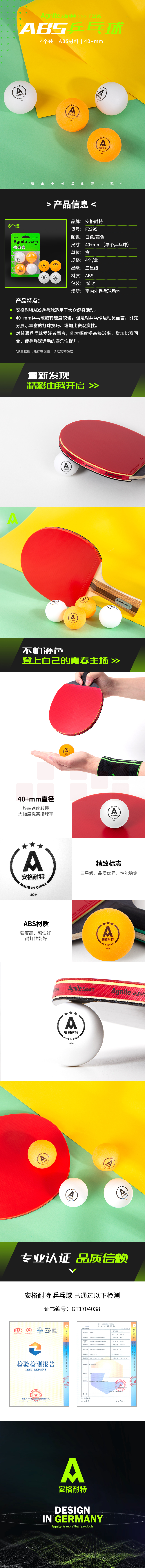 安格耐特F2395三星乒乓球(黄色、白色)(4个/卡)